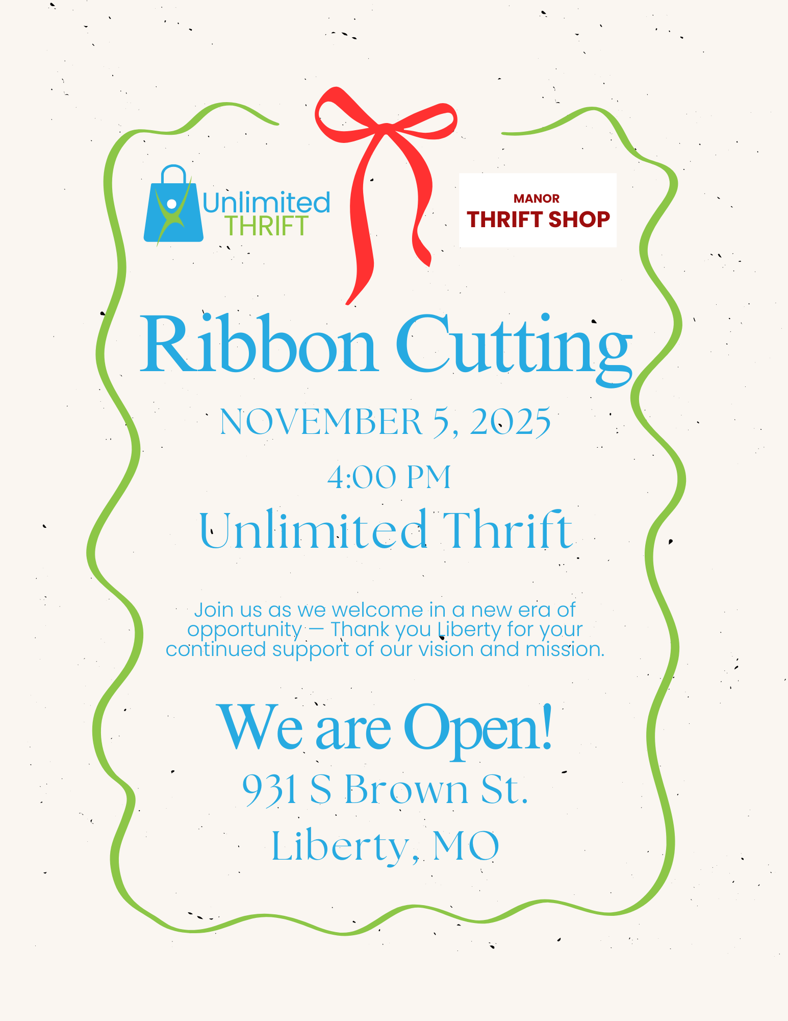 Located in the heart of Liberty, MO, we’re more than just a thrift store – we’re a vital part of supporting Life Unlimited and adults with disabilities in Liberty and the Kansas City Area.